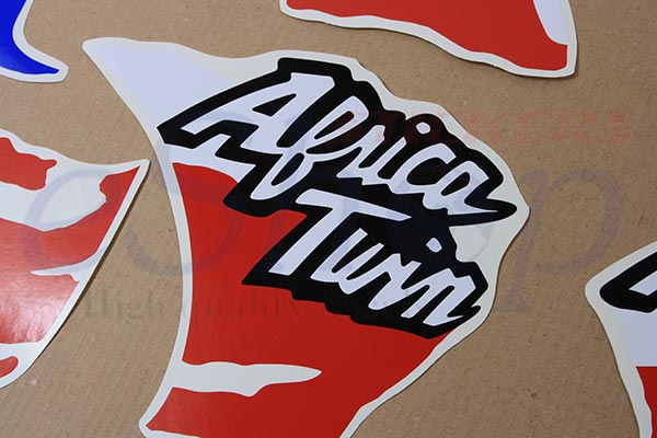 Custom made decals from combined self adhesive color vinyl for outdoor use manufactured in latest technology cutting machines.