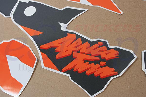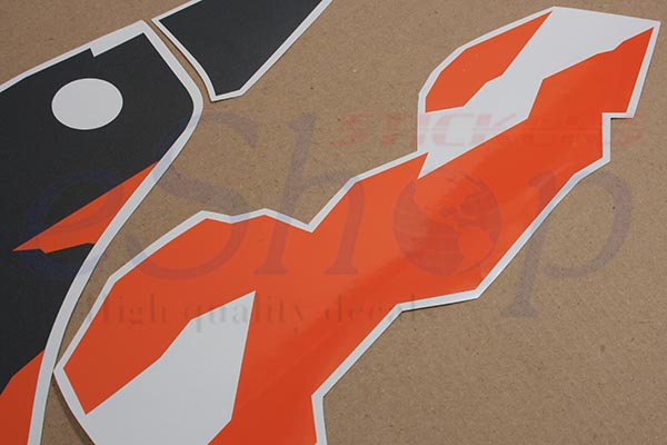 Custom made decals from combined self adhesive color vinyl for outdoor use manufactured in latest technology cutting machines.