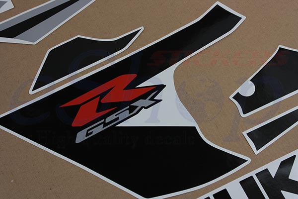 Πλήρες κιτ custom αυτοκόλλητων GSX-R 600 Μαύρη Ασημί έκδοση 2005 Κ5